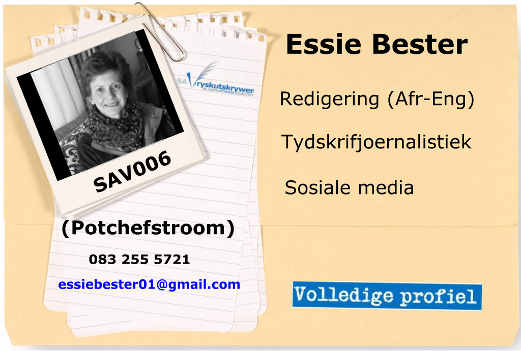 Tans bemark ek myself as Proefleser en Teksredigeerder, veral aan universiteitstudente.