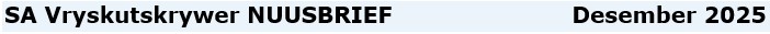 Welkom by SA Vryskutskrywer - Nuusbrief