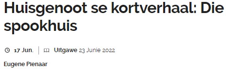 Die Spookhuis, in Huisgenoot gepubliseer.