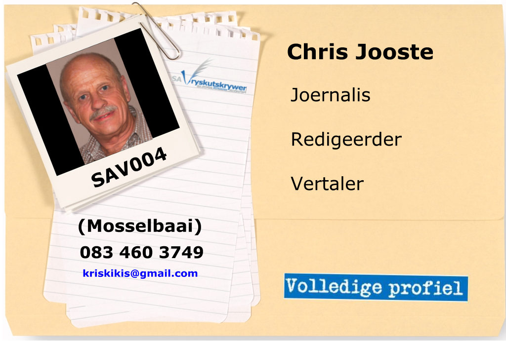 Wil jy van Chris se skryfdienste gebruik maak? Kontak hom by
