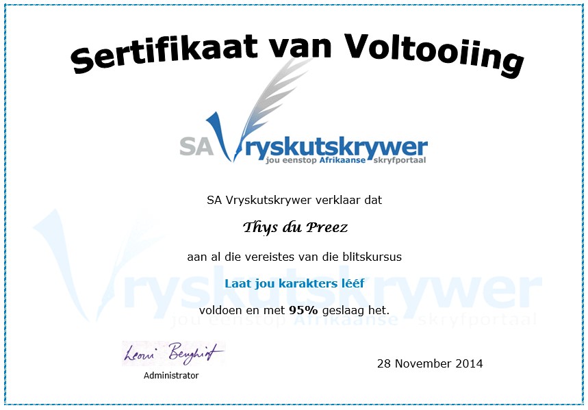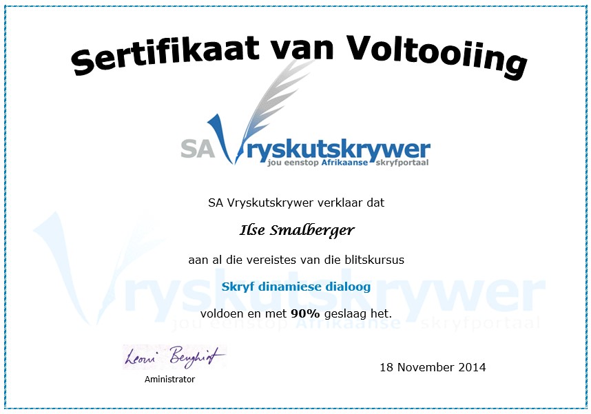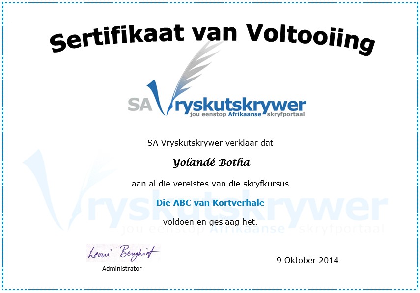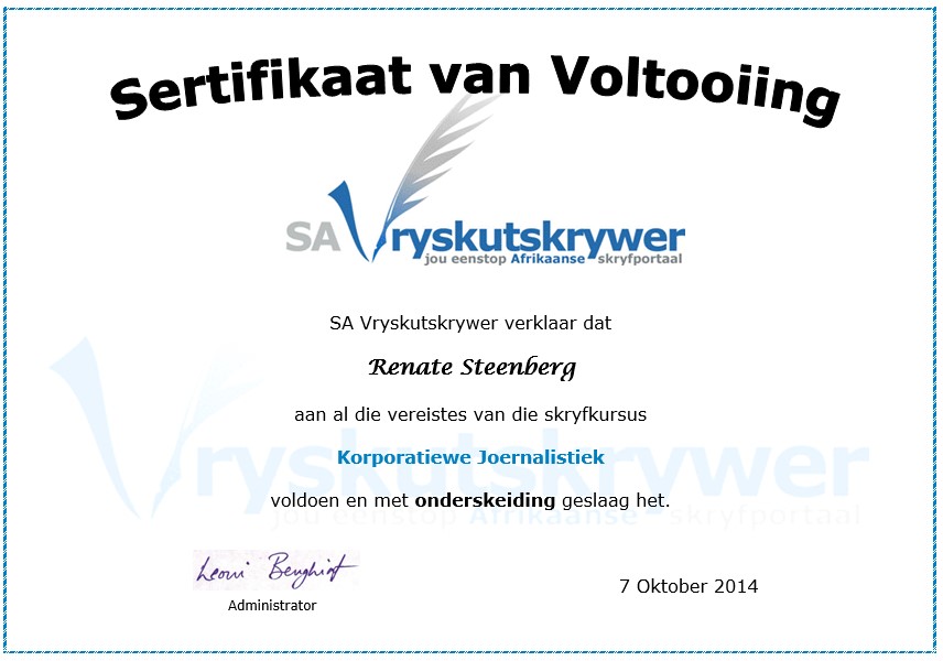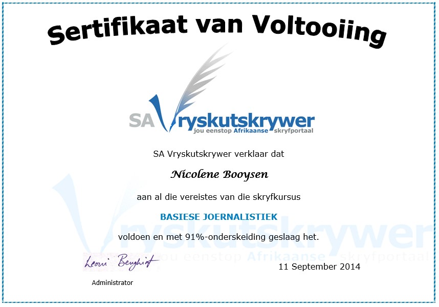 • Indien jou sertifikaat nie hier is nie, stuur dit asseblief aan ons.