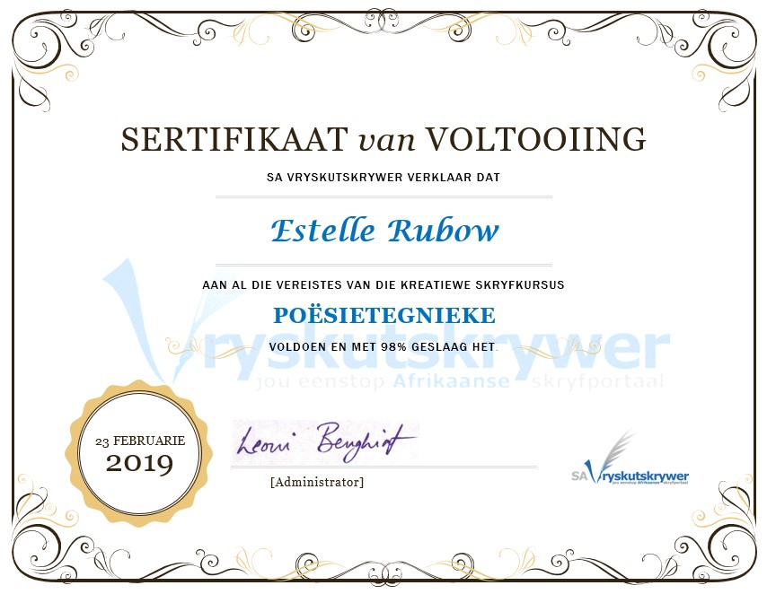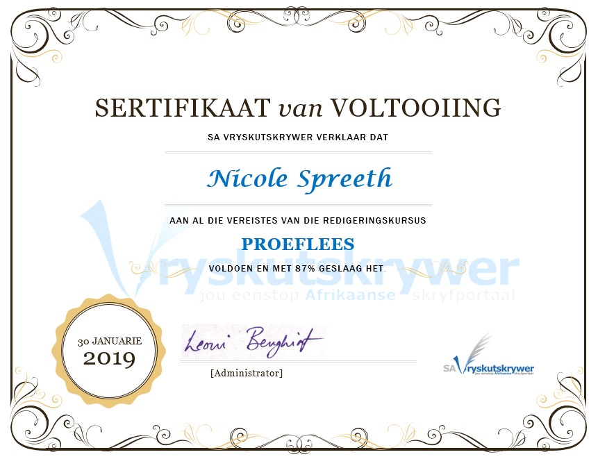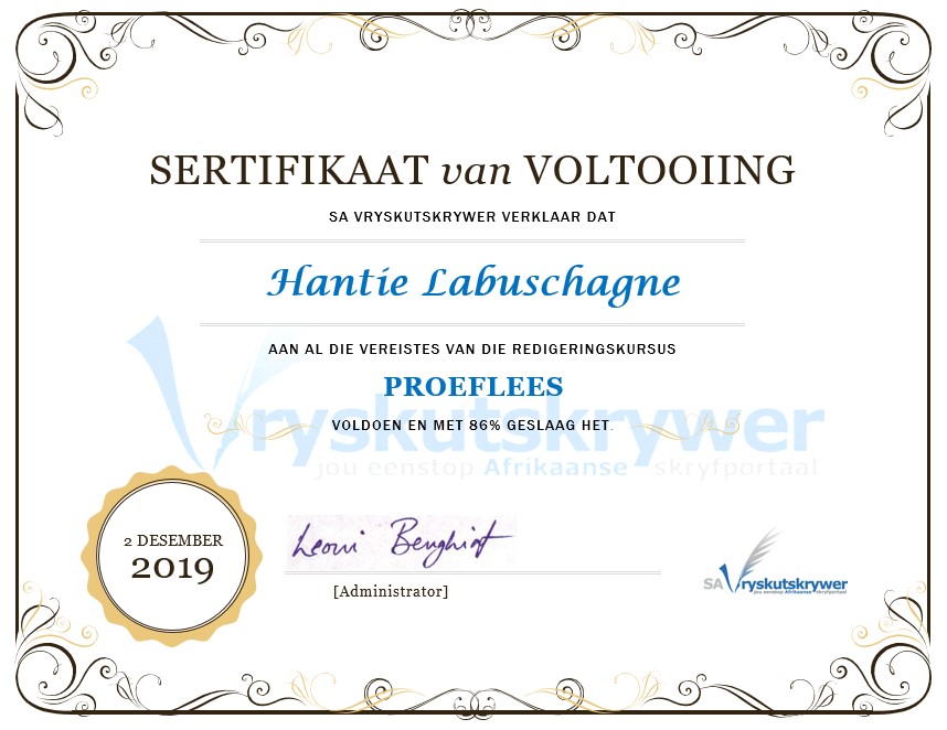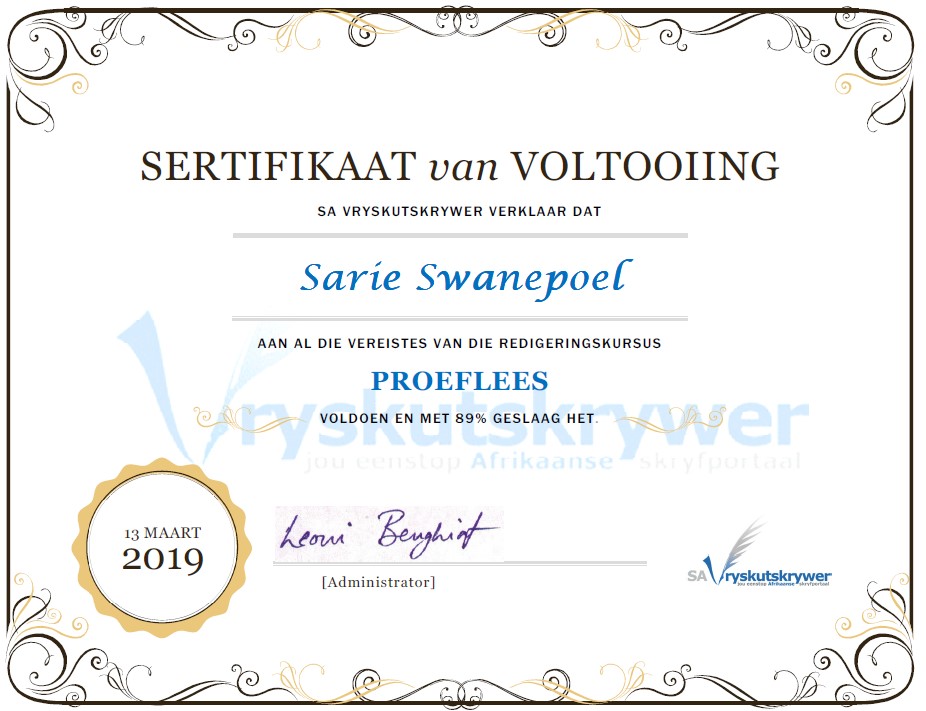 • Indien jou sertifikaat nie hier is nie, klik asseblief hier om dit aan ons te stuur.