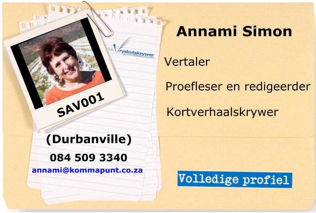 Met vertroue bied ek my kundigheid en ervaring van meer as 20 jaar in die media as vertaler en subredakteur aan.