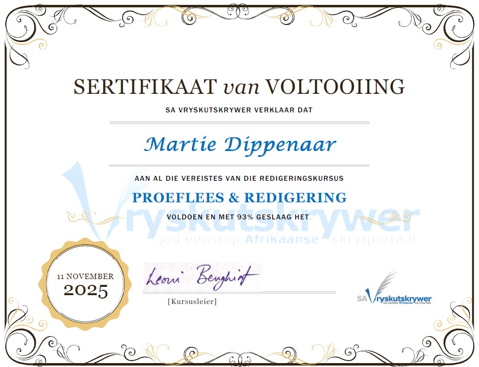 Voltooi proeflees- en redigeringskursus by SA Vryskutskrywer (2025)